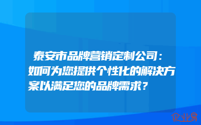 - 泰安市品牌营销定制公司:如何为您提供个性化的解决方案以满足您的品牌需求?