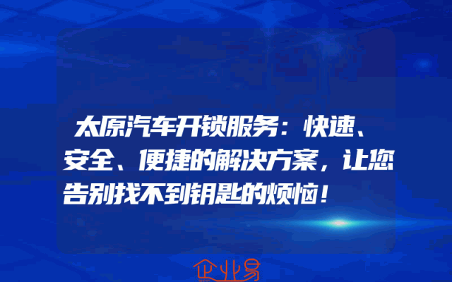 - 太原汽车开锁服务:快速、安全、便捷的解决方案,让您告别找不到钥匙的烦恼!