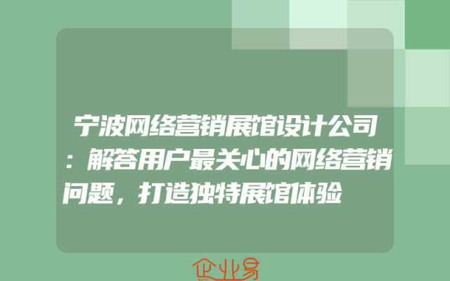 - 宁波网络营销展馆设计公司:解答用户最关心的网络营销问题,打造独特展馆体验