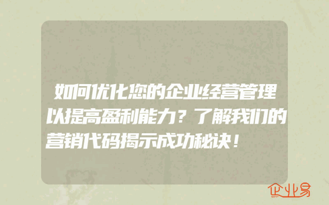 - 如何优化您的企业经营管理以提高盈利能力?了解我们的营销代码揭示成功秘诀!