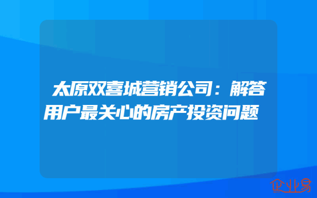 - 太原双喜城营销公司:解答用户最关心的房产投资问题