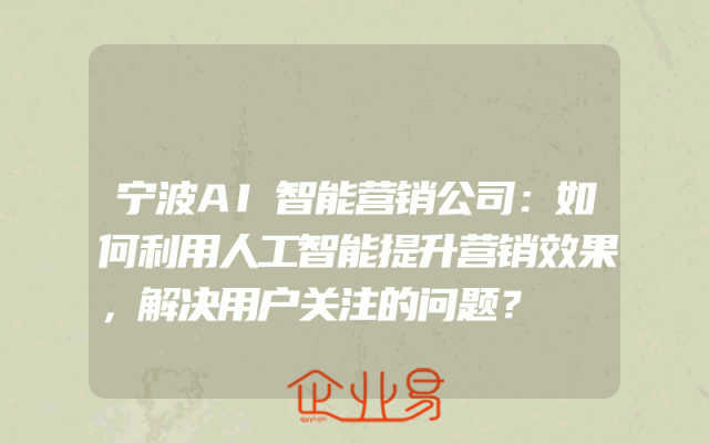 - 宁波AI智能营销公司:如何利用人工智能提升营销效果,解决用户关注的问题?