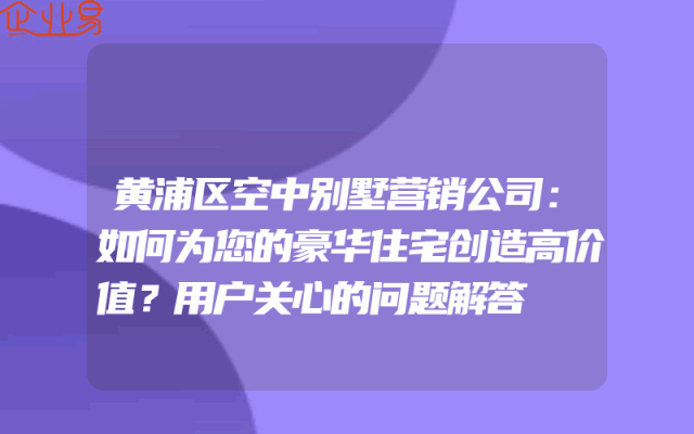 - 黄浦区空中别墅营销公司:如何为您的豪华住宅创造高价值?用户关心的问题解答