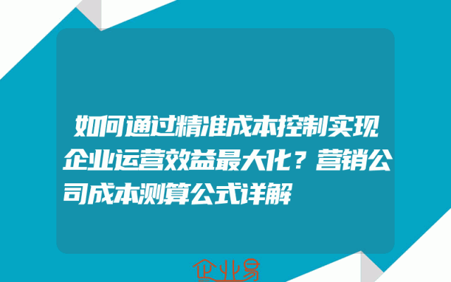 - 如何通过精准成本控制实现企业运营效益最大化?营销公司成本测算公式详解