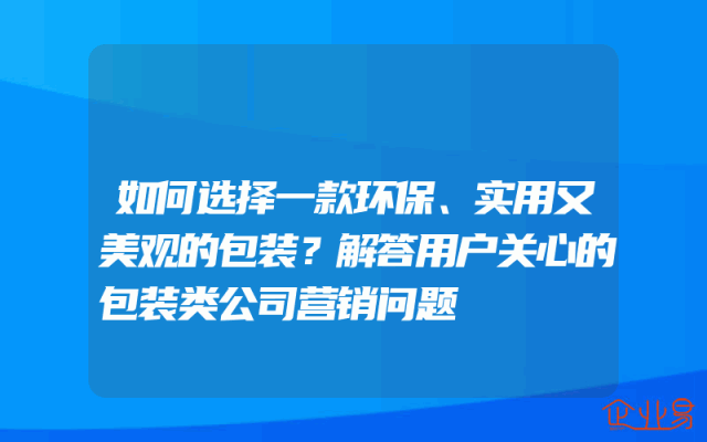- 如何选择一款环保、实用又美观的包装?解答用户关心的包装类公司营销问题