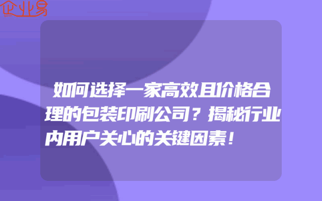 - 如何选择一家高效且价格合理的包装印刷公司?揭秘行业内用户关心的关键因素!