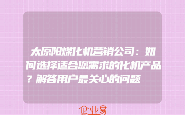 - 太原阳煤化机营销公司:如何选择适合您需求的化机产品?解答用户最关心的问题