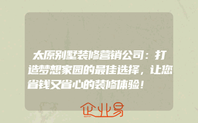 - 太原别墅装修营销公司:打造梦想家园的最佳选择,让您省钱又省心的装修体验!