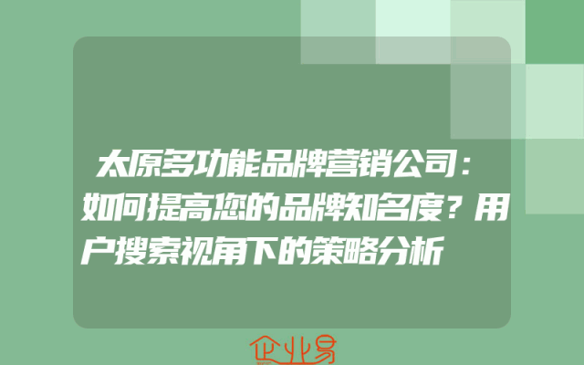 - 太原多功能品牌营销公司:如何提高您的品牌知名度?用户搜索视角下的策略分析