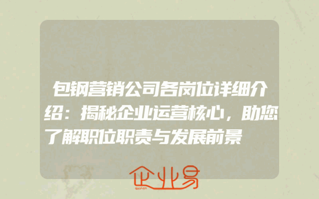 - 包钢营销公司各岗位详细介绍:揭秘企业运营核心,助您了解职位职责与发展前景