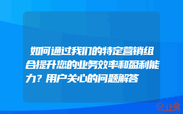 - 如何通过我们的特定营销组合提升您的业务效率和盈利能力?用户关心的问题解答