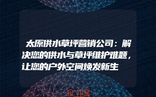 - 太原供水草坪营销公司:解决您的供水与草坪维护难题,让您的户外空间焕发新生