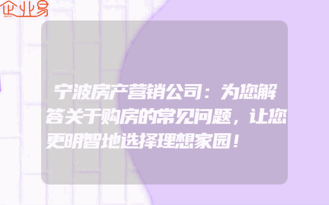 - 宁波房产营销公司:为您解答关于购房的常见问题,让您更明智地选择理想家园!
