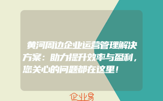 - 黄河周边企业运营管理解决方案:助力提升效率与盈利,您关心的问题都在这里!