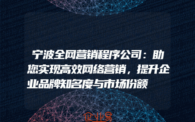 - 宁波全网营销程序公司:助您实现高效网络营销,提升企业品牌知名度与市场份额