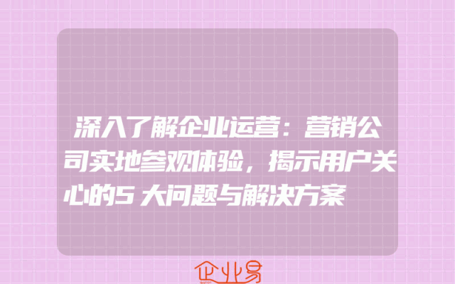 - 深入了解企业运营:营销公司实地参观体验,揭示用户关心的5大问题与解决方案