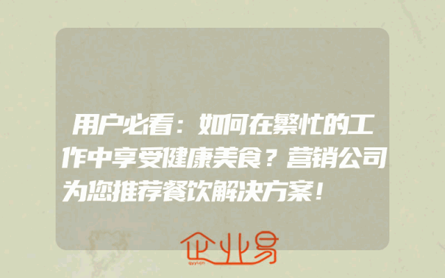 - 用户必看:如何在繁忙的工作中享受健康美食?营销公司为您推荐餐饮解决方案!