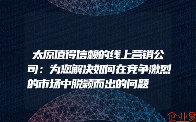 - 太原值得信赖的线上营销公司:为您解决如何在竞争激烈的市场中脱颖而出的问题