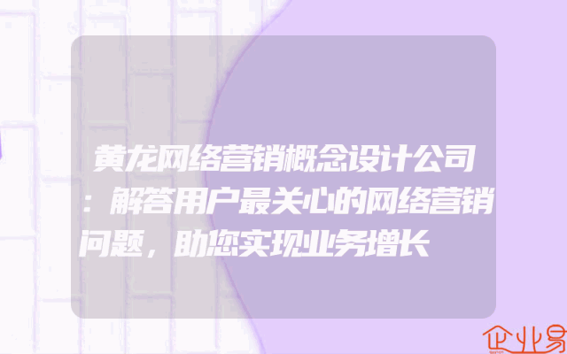 - 黄龙网络营销概念设计公司:解答用户最关心的网络营销问题,助您实现业务增长
