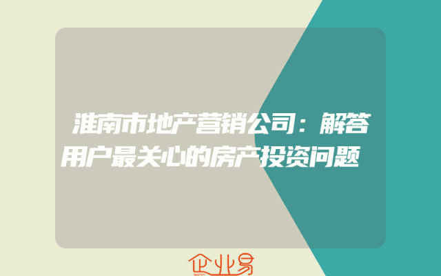 - 淮南市地产营销公司:解答用户最关心的房产投资问题