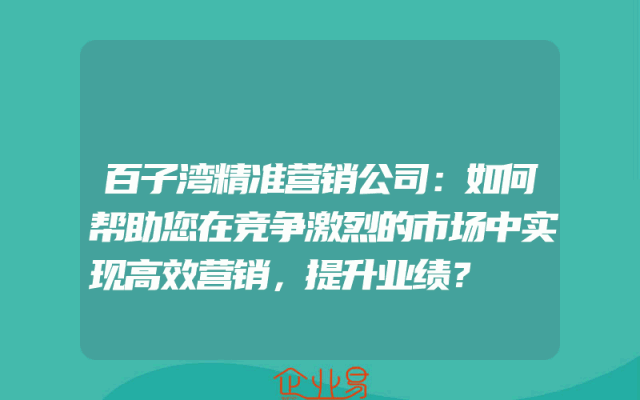 - 百子湾精准营销公司:如何帮助您在竞争激烈的市场中实现高效营销,提升业绩?