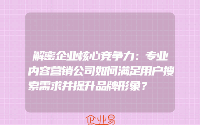 - 解密企业核心竞争力:专业内容营销公司如何满足用户搜索需求并提升品牌形象?