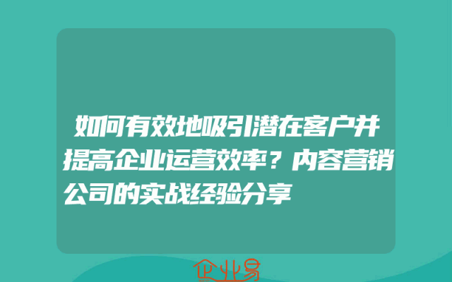 - 如何有效地吸引潜在客户并提高企业运营效率?内容营销公司的实战经验分享