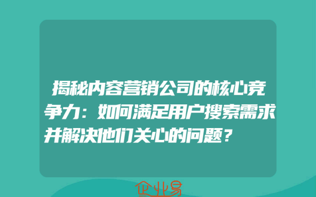 - 揭秘内容营销公司的核心竞争力:如何满足用户搜索需求并解决他们关心的问题?