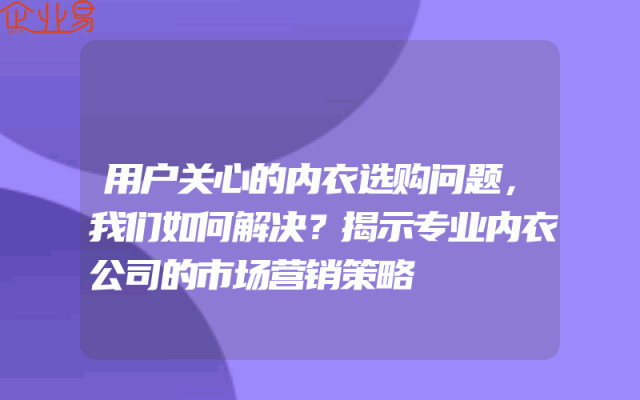 - 用户关心的内衣选购问题,我们如何解决?揭示专业内衣公司的市场营销策略