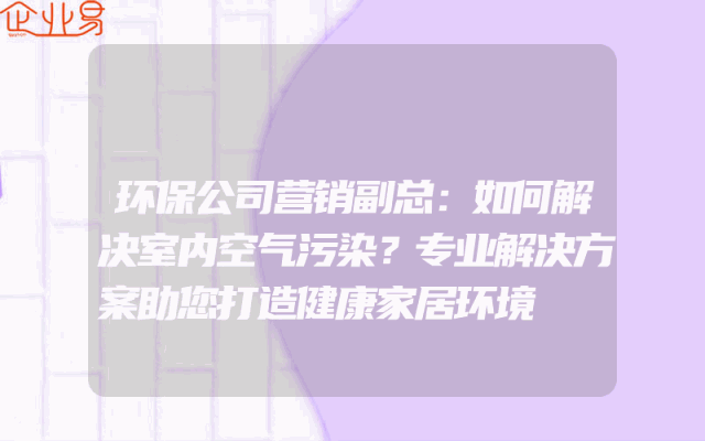 - 环保公司营销副总:如何解决室内空气污染?专业解决方案助您打造健康家居环境