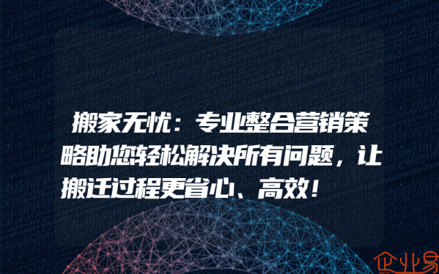 - 搬家无忧:专业整合营销策略助您轻松解决所有问题,让搬迁过程更省心、高效!