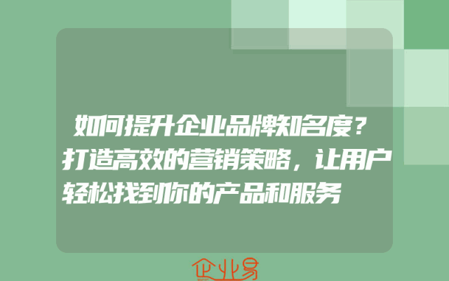 - 如何提升企业品牌知名度?打造高效的营销策略,让用户轻松找到你的产品和服务