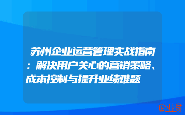 - 苏州企业运营管理实战指南:解决用户关心的营销策略、成本控制与提升业绩难题