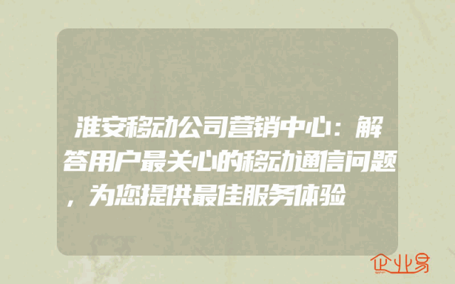 - 淮安移动公司营销中心:解答用户最关心的移动通信问题,为您提供最佳服务体验