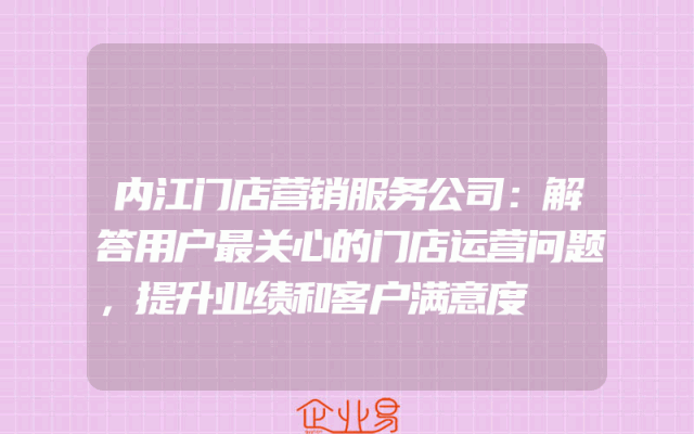 - 内江门店营销服务公司:解答用户最关心的门店运营问题,提升业绩和客户满意度