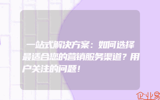 - 一站式解决方案:如何选择最适合您的营销服务渠道?用户关注的问题!