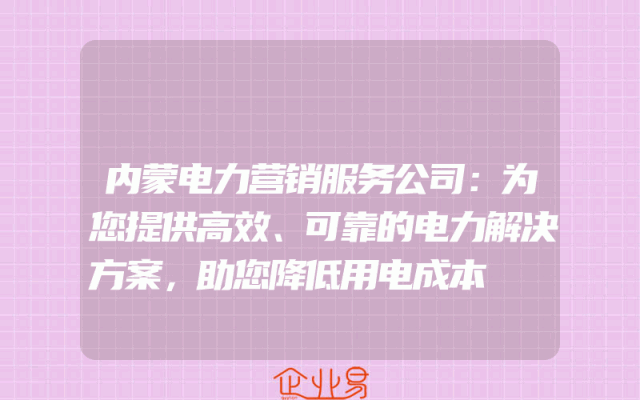 - 内蒙电力营销服务公司:为您提供高效、可靠的电力解决方案,助您降低用电成本