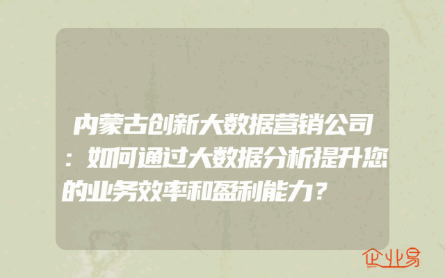 - 内蒙古创新大数据营销公司:如何通过大数据分析提升您的业务效率和盈利能力?