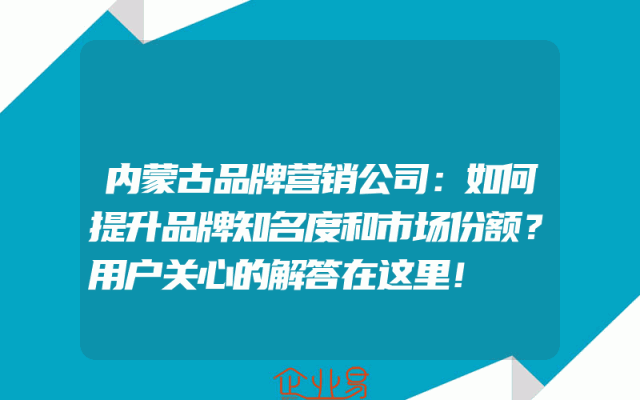 - 内蒙古品牌营销公司:如何提升品牌知名度和市场份额?用户关心的解答在这里!