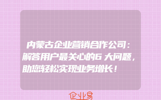 - 内蒙古企业营销合作公司:解答用户最关心的6大问题,助您轻松实现业务增长!