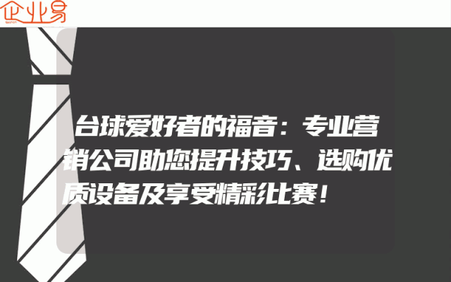 - 台球爱好者的福音:专业营销公司助您提升技巧、选购优质设备及享受精彩比赛!对于台球爱好者来说,提升技巧、选购优质设备以及享受精彩比赛是非常重要的事情。然而,这些任务对于许多人来说可能会感到有些困难。幸运的是,有专业的营销公司可以帮助您解决这些