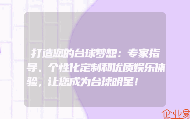- 打造您的台球梦想:专家指导、个性化定制和优质娱乐体验,让您成为台球明星!