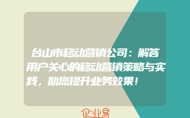 - 台山市移动营销公司:解答用户关心的移动营销策略与实践,助您提升业务效果!