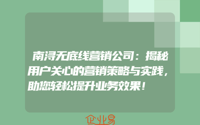 - 南浔无底线营销公司:揭秘用户关心的营销策略与实践,助您轻松提升业务效果!