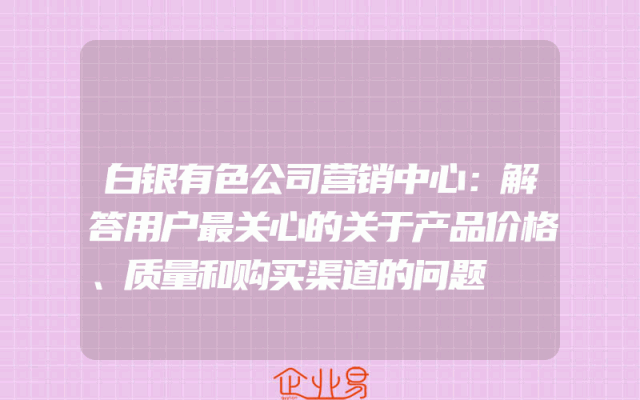 - 白银有色公司营销中心:解答用户最关心的关于产品价格、质量和购买渠道的问题