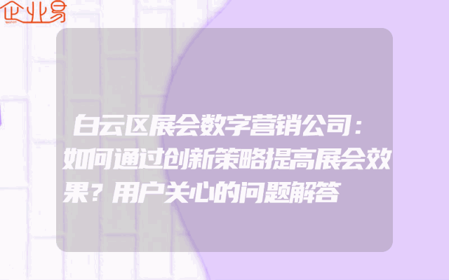 - 白云区展会数字营销公司:如何通过创新策略提高展会效果?用户关心的问题解答