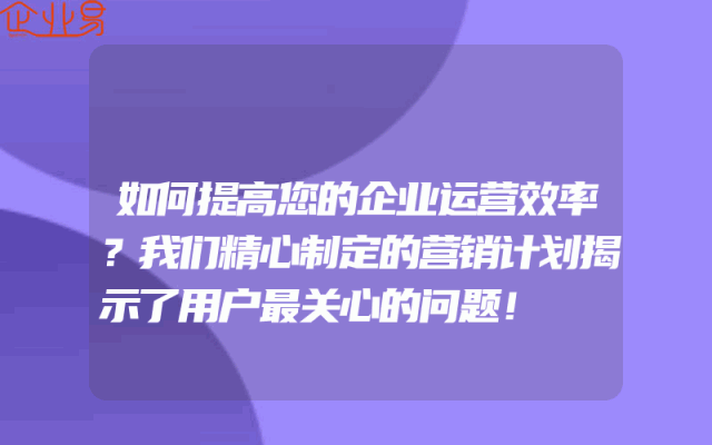 - 如何提高您的企业运营效率?我们精心制定的营销计划揭示了用户最关心的问题!