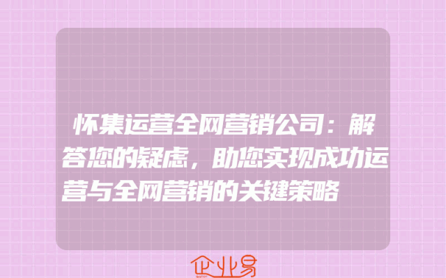 - 怀集运营全网营销公司:解答您的疑虑,助您实现成功运营与全网营销的关键策略