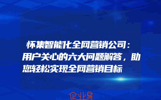 - 怀集智能化全网营销公司:用户关心的六大问题解答,助您轻松实现全网营销目标