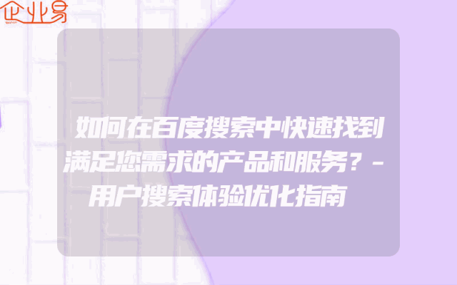 - 如何在百度搜索中快速找到满足您需求的产品和服务?- 用户搜索体验优化指南